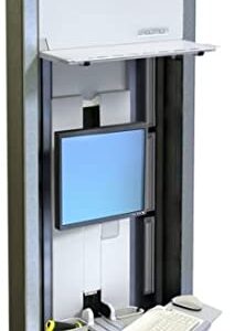Secure, complete, compact workstation is perfect for space-constrained patient rooms. Low profile vertical lift provides 9″ of smooth height adjustment and folds into a slim, compact unit when not in use. Keyless locking mechanism protects patient data and aids in the compliance with privacy requirements, like HIPAA.